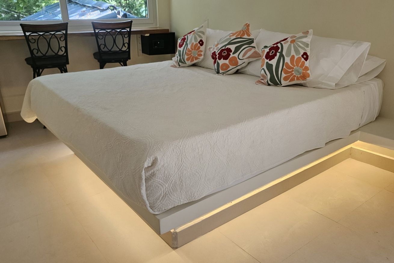 • 1 cómoda cama King con colchón ergonómico y almohadas hipoalergénicas